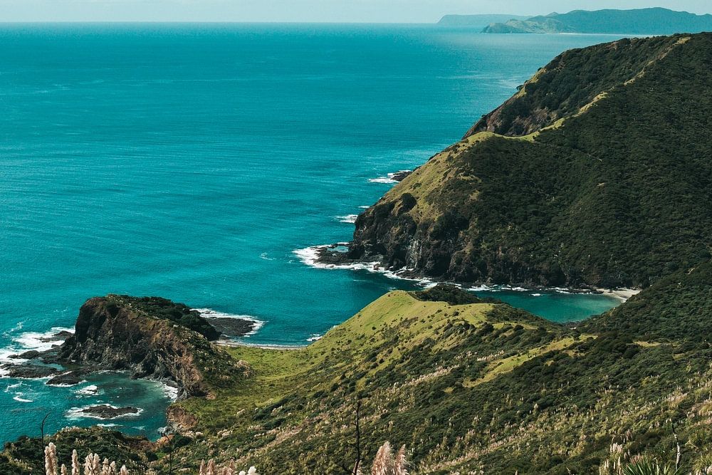 Green coastline near Cape Reinga and the Pacific Ocean, New Zealand by Rianne van Baarsen