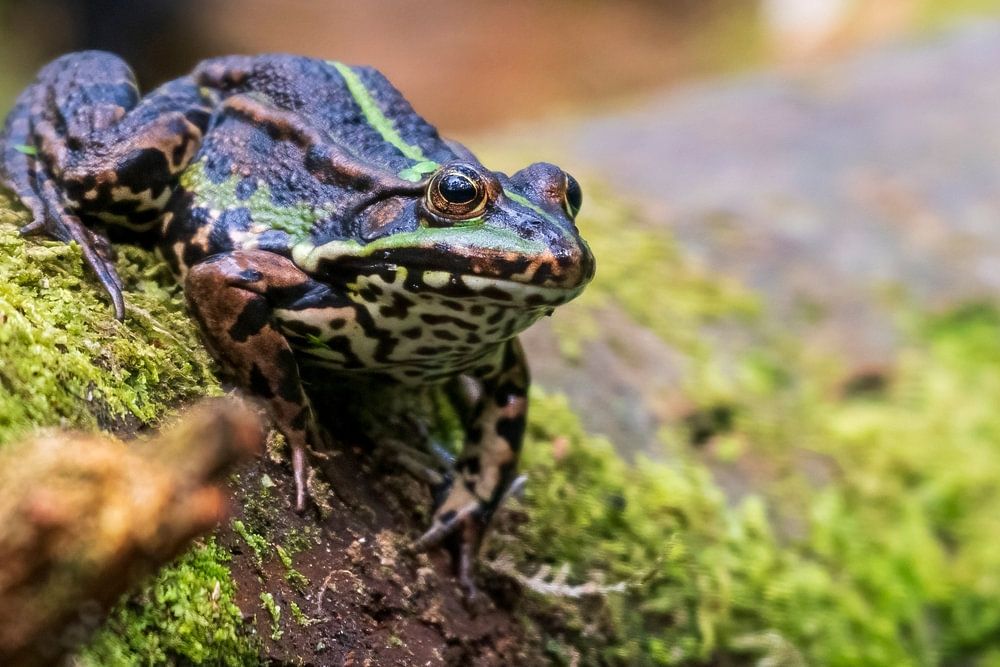 The green frog is an amphibian that is mainly is ponds and ditches. You can hear its croaking very well when you live next to it. They mainly eat insects that they catch right out of the air with their tongues.