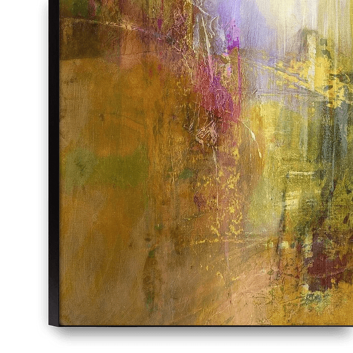Buy this abstract artwork Green meets purple - golden light_ by Annette Schmucker on canvas, ArtFrame, poster and wallpaper, printed on demand in high quality.