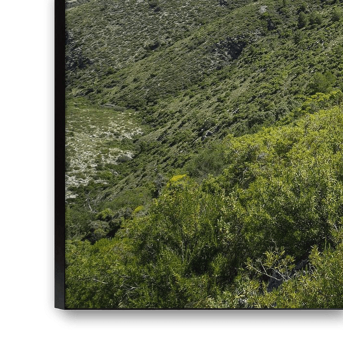 My work is inspired by long hikes in the southeast of Spain, where I am enchanted by Mediterranean landscapes and mountains. When I'm out in nature and let my gaze wander across the wide landscape, the clocks seem to tick a little more slowly. This mountain landscape is destined to bring some of the magic of the Spanish mountains into your four walls.