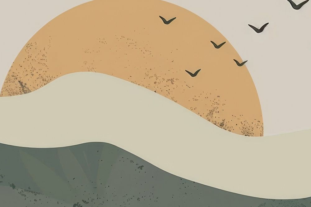 This artwork depicts a minimalist landscape with a green sunrise and flying birds, creating a calming and peaceful mood. The harmonious green tones and gentle hills make it ideal for modern living spaces, bedrooms or offices. Perfect for lovers of contemporary and relaxing decor. This piece adds an elegant and tranquil touch to any room, inviting you to linger.