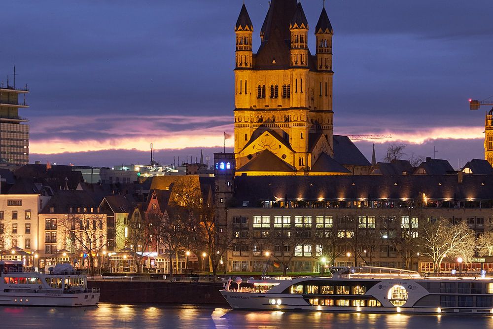 Groß St. Martin's Church and view of Cologne's Old Town at night by 77pixels