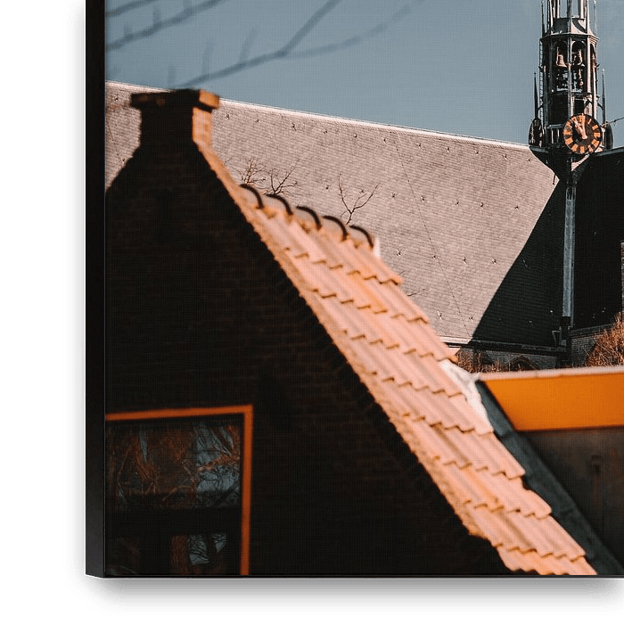 Grote Kerk in Alkmaar, beautifully lit in a warm autumn sun. Superb for any room of the pure Alkmaar resident.