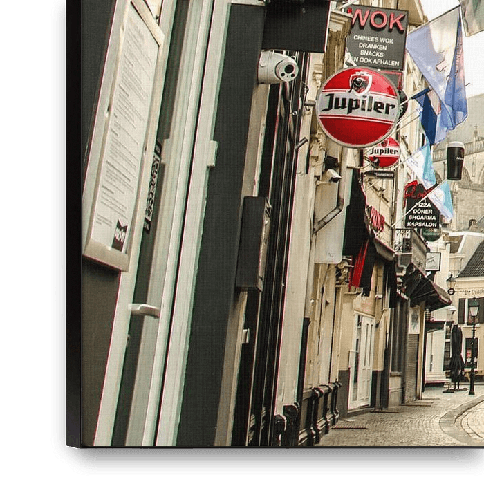 Buy the photo Grote Kerk from the Vismarktstraat in Breda by Floris Oosterveld on canvas, ArtFrame, poster and wallpaper, printed on demand in high quality.