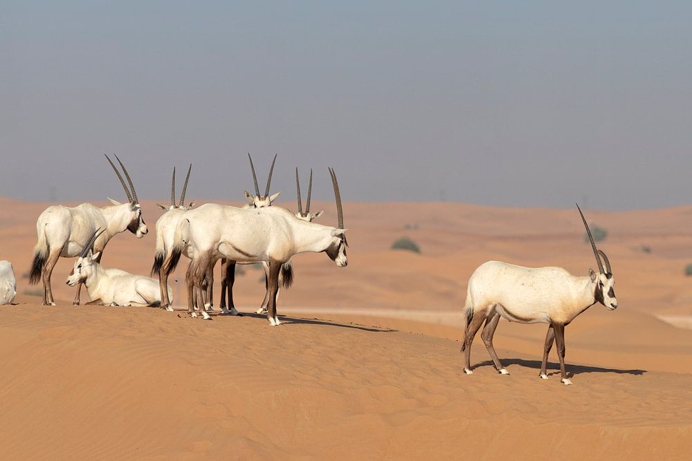 Near Dubai, in the UAE is a piece of nature reserve where you (with a guide) can encounter a rare scene like this. The Oryx is probably the origin of the mythical unicorn.