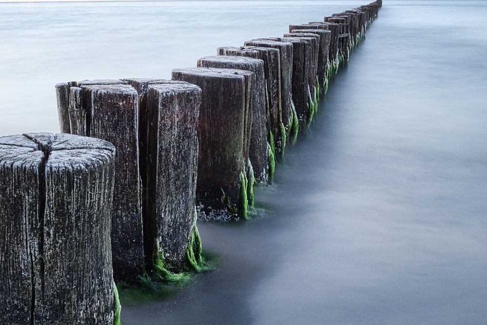 Groynes reaching into the Baltic Sea in a long-term photograph by Martin Köbsch