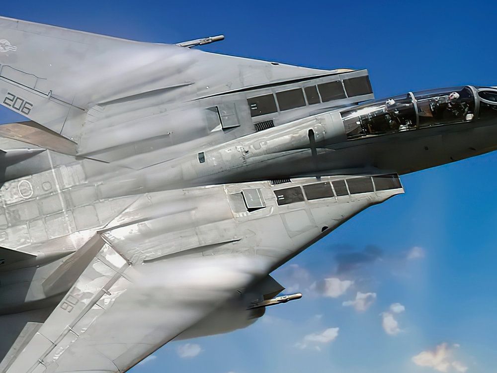 The F-14 was equipped with a, for its time, unique weapon system, the AWG-9 radar guidance system coupled to the AIM-54 Phoenix air-to-air missile. This allowed air targets at a distance of more than 150 km to be tracked and shot. The AWG-9 is a pulse Doppler multimoderadar that allows multiple air targets to be tracked and attacked simultaneously.