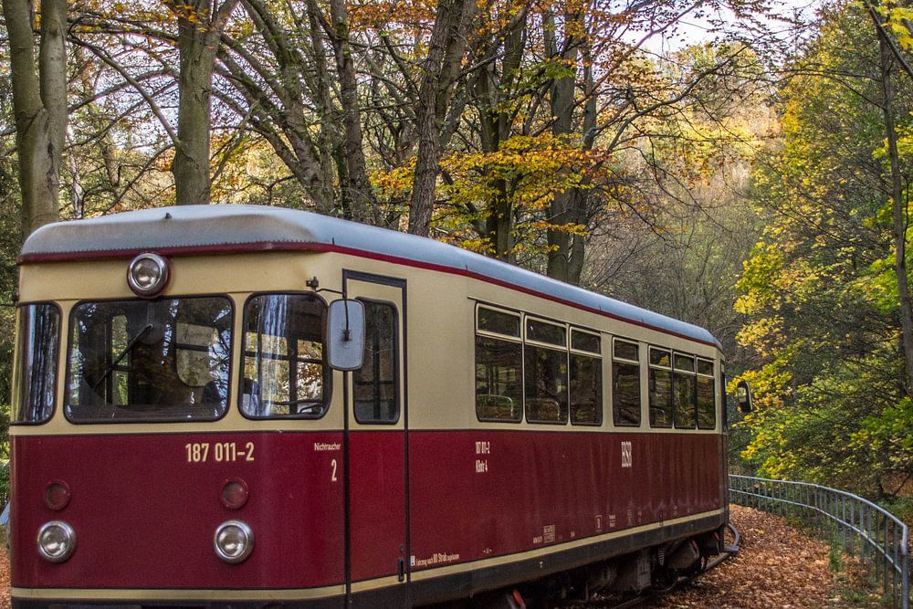 VT 187-011 of the HSB (Harze Schmalspurbahnen) leaves Alexisbad.