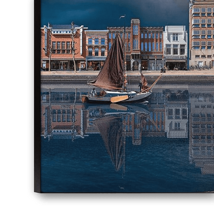 The Cityscape of Haarlem is composed of many important monumental buildings and churches in the city. These were photographed piece by piece and brought back together in this cityscape along the Spaarne. All of monumental Haarlem together with the Gravestone Bridge in one view!