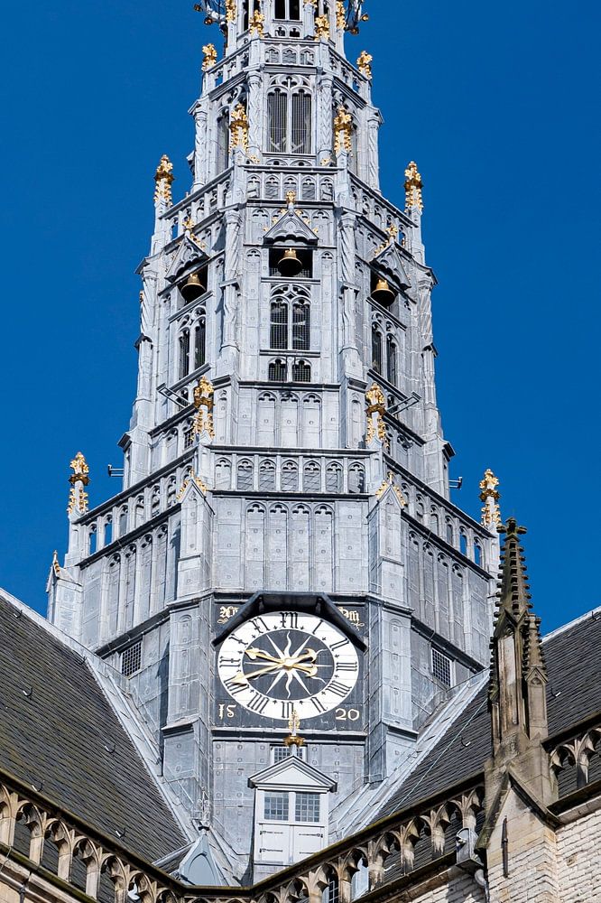 About "Haarlem Netherlands Grote Kerk or St.-Bavokerk under blue skies"