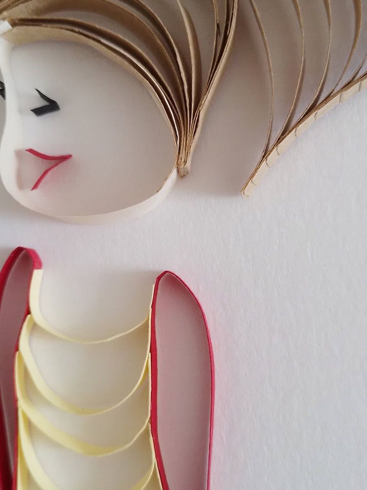 A course in paperfiligree offered me the opportunity to do something with it. It appears to be a centuries old technique for numerous decorations such as cards and gifts, but also as wall decoration.