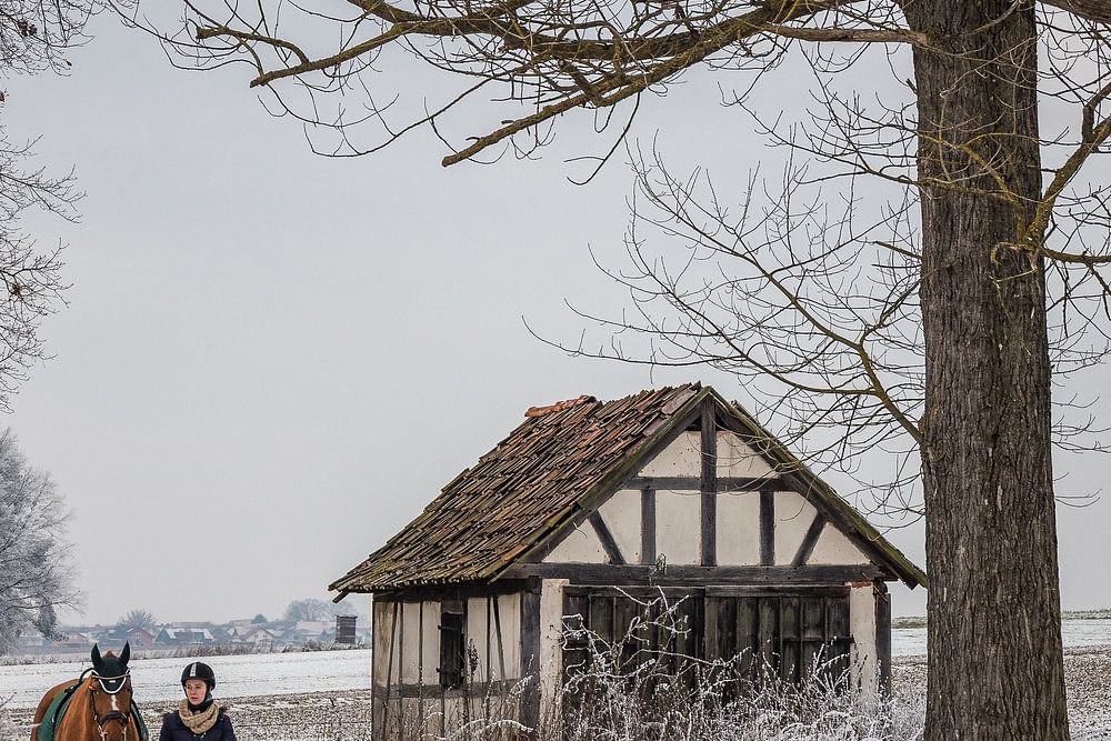 Winter Landscape, Half-Timbered Field Barn in the Schwalm