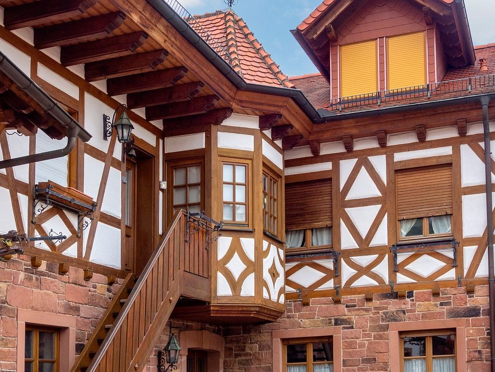 Half-timbered house and courtyard in Sankt Martin, a small town in southern Germany
