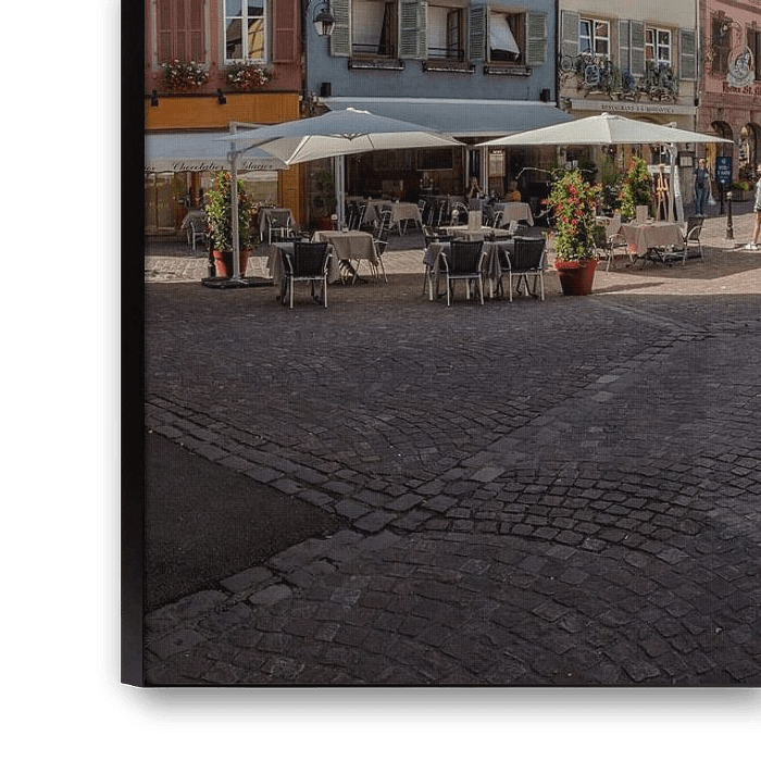 Buy the photo Half-timbered houses on the Grand'Rue, terraces, cafe, Colmar, Alsace, France by Rene van der Meer on canvas, ArtFrame, poster and wallpaper, printed on demand in high quality.
