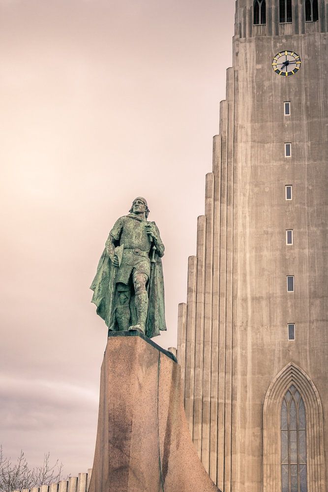 With the statue of Leif Eriksson in the foreground, this modern building characterises the cityscape.