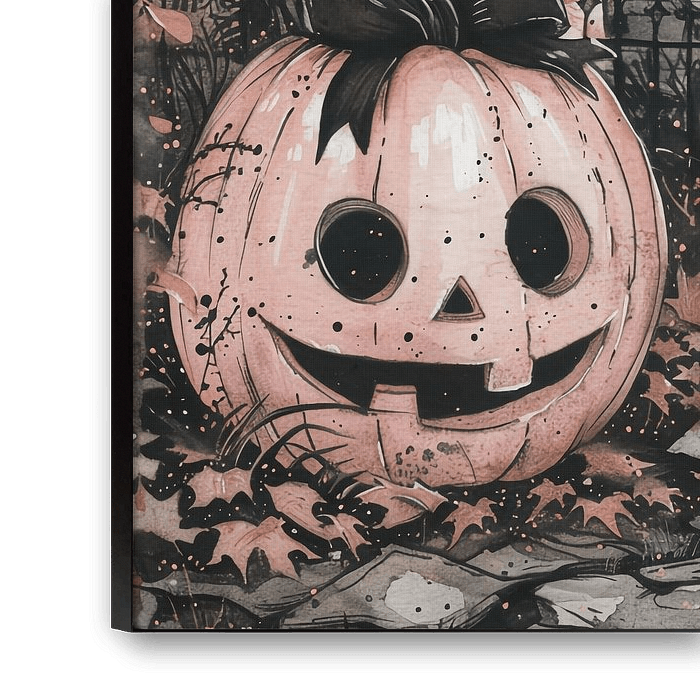 Buy this illustration Halloween pink pumpkin with a cute ghost by haroulita on canvas, ArtFrame, poster and wallpaper, printed on demand in high quality.