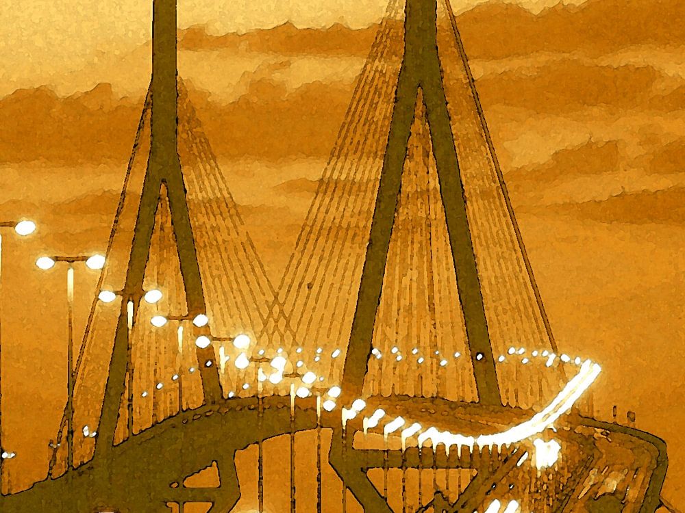 Hamburg Köhlbrandbrücke as digital watercolor on photo basis in poster style.