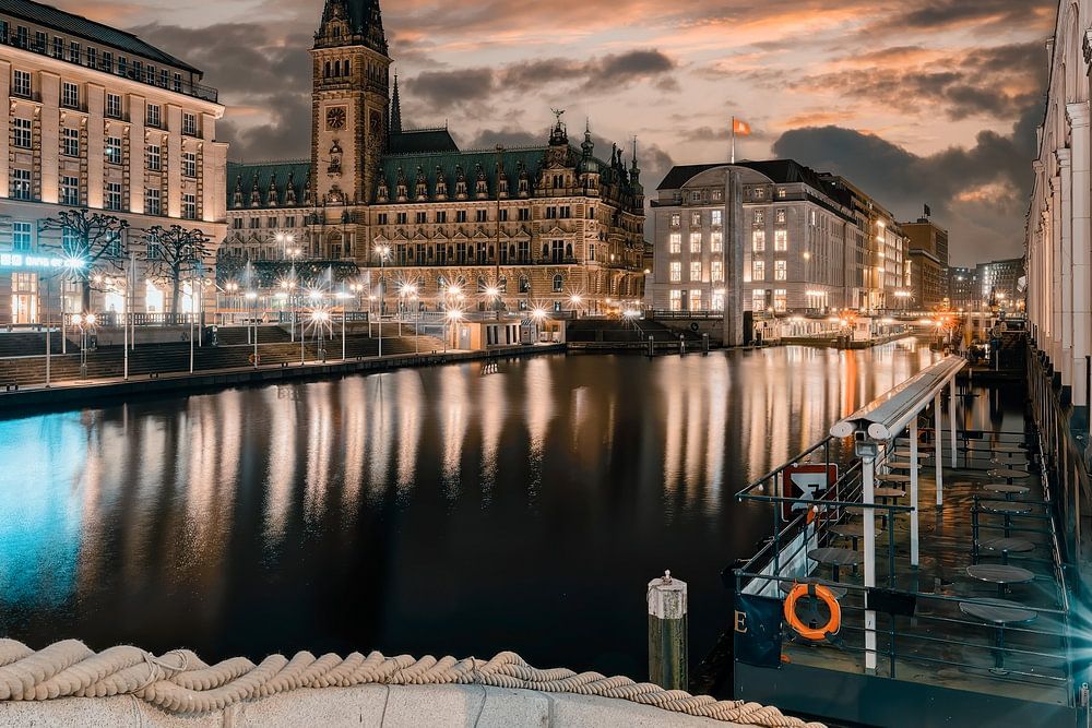 View of Hamburg City Hall with the famous Colonnades on the right side