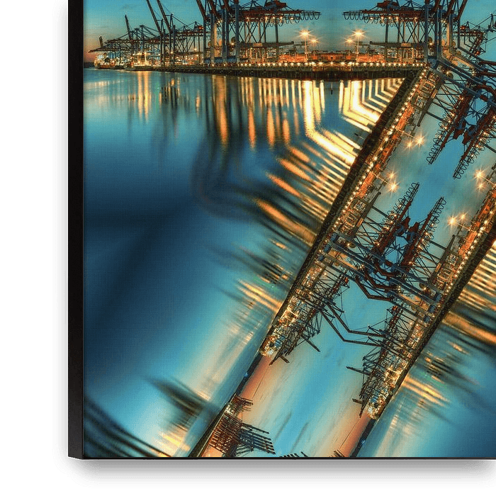 Buy this still life Hamburg - cranes at Burchardkai - abstract by Sabine Wagner on canvas, ArtFrame, poster and wallpaper, printed on demand in high quality