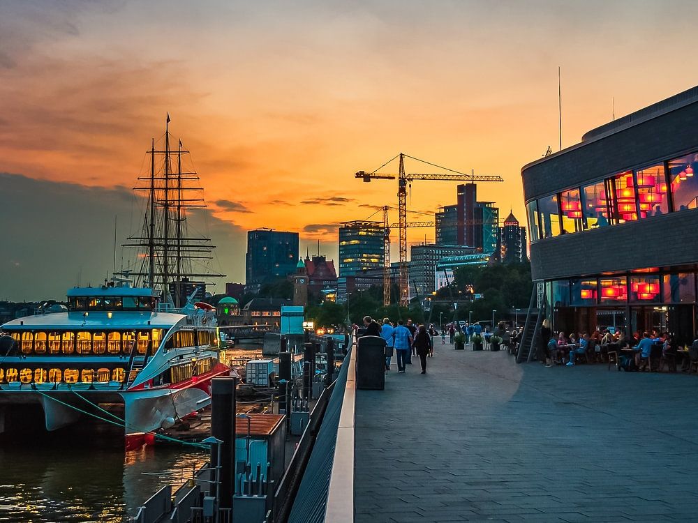 Hamburg harbour with sunset by Mustafa Kurnaz
