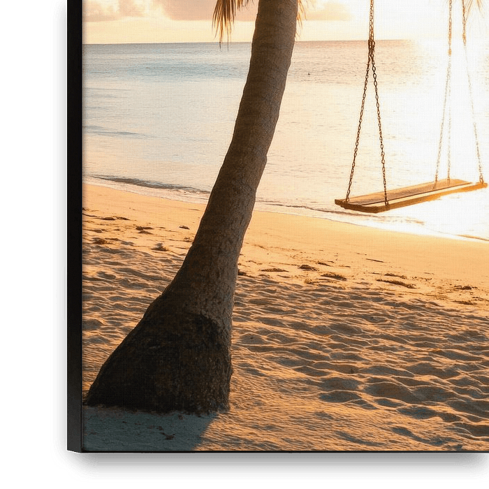 A gentle breeze blows through the palm trees while the golden sun kisses the horizon. The swings invite you to relax, the waves murmur soft secrets. Nature and cosiness come together here, and every ray of sunshine reminds you to hold on to a moment forever. A paradise where time seems to stand still.