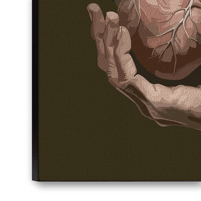 A powerful depiction of two hands delicately holding a human heart. This realistic artwork captures themes of vulnerability, life, and connection, making it a compelling centerpiece for modern interiors. Ideal for canvas, metal, or wood prints.