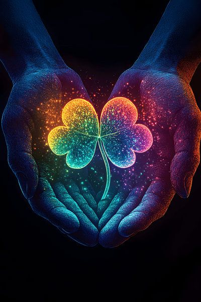 Buy this abstract artwork Hands around a four-leaf clover by MNS Designs on canvas, ArtFrame, poster and wallpaper, printed on demand in high quality.