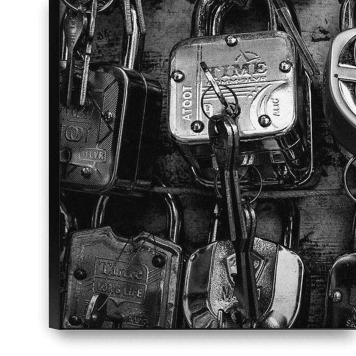 Hanging clasps photographed at a street shop in Nepal. They are also often used as love locks.