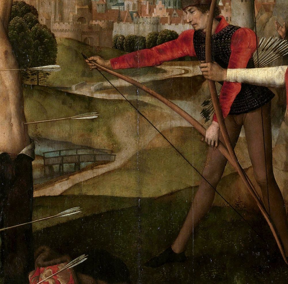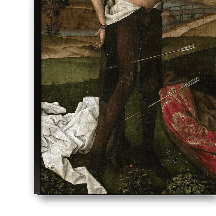 Hans Memling. Martyrdom of Saint Sebastian Hans Memling (1430-1494) tried to depict figures and groups in a realistic setting and sought balance and symmetry in his forms. He thus presented a serene image of the world and paradise, where saints and people live together in harmony. He thus expressed a mystical ideal in his paintings, although it can be judged that they appear slightly more static than those of his predecessors.