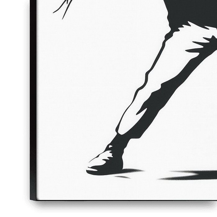 This iconic urban art masterpiece in the style of Banksy pulsates with provocative poetry: a masked fighter, in classic black and white street art stencil sharpness, hurls a bright red bouquet of flowers instead of a bomb or stone - an ingenious twist that turns violence into tenderness. Inspired by 60s protests and pure street art…