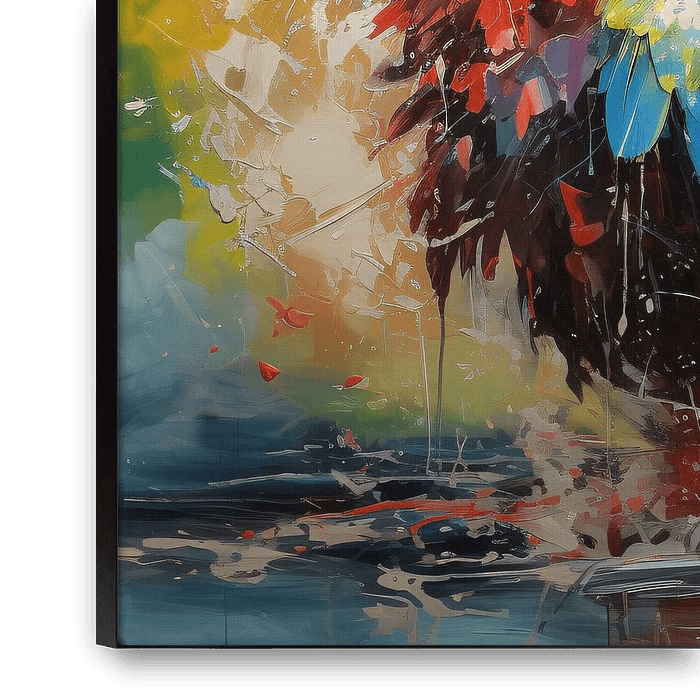 Be inspired by the vibrant colours and patterns of the parrot in this abstract painting. A celebration of natural beauty and freedom.