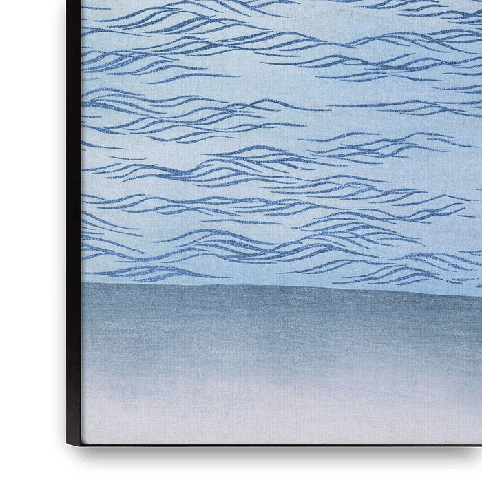 A watercolor painting in pleasant blue colors makes this landscape painting quite relaxing.