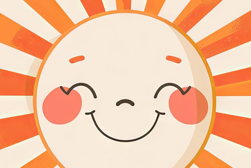 This cheerful mural features a smiling sun with bright orange and white rays that create a warm and inviting atmosphere. Perfect for children's bedrooms or playrooms, this colourful design will bring joy and positive energy to any room. Ideal for parents who want to create a lively and cheerful environment for their children. An enchanting eye-catcher that will delight both children and adults.
