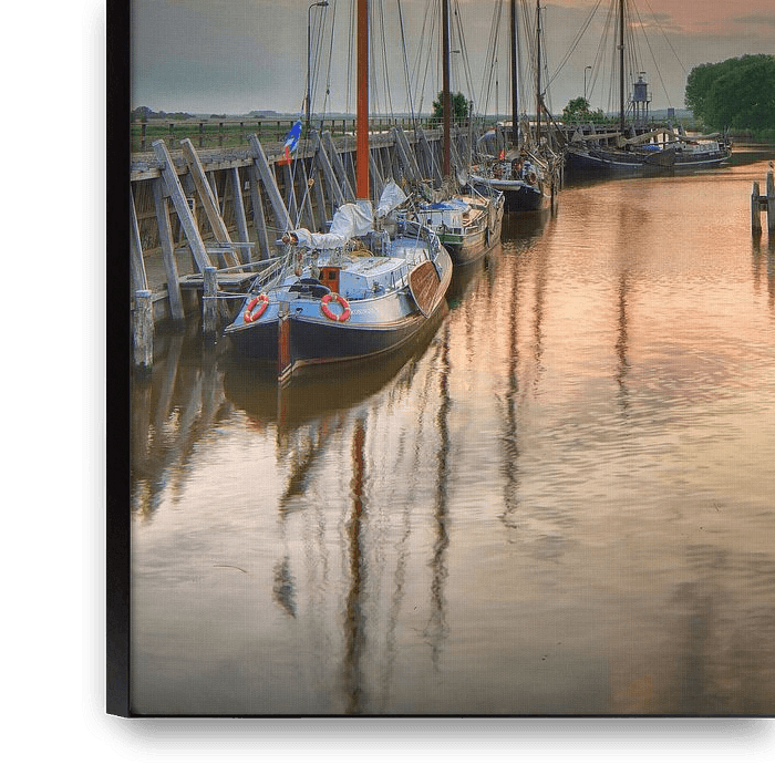 Buy the photo Harbor Salt Camp at sunset by John Leeninga on canvas, ArtFrame, poster and wallpaper, printed on demand in high quality.