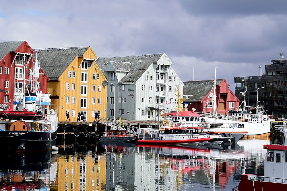 The first town we visited on the cruise to the North Cape was Tromsø in Norway. When we arrived in the morning the weather was clouded and pretty dull. A few hours later however, it cleared up great which made the colourful buildings reflect nicely in the harbour.
