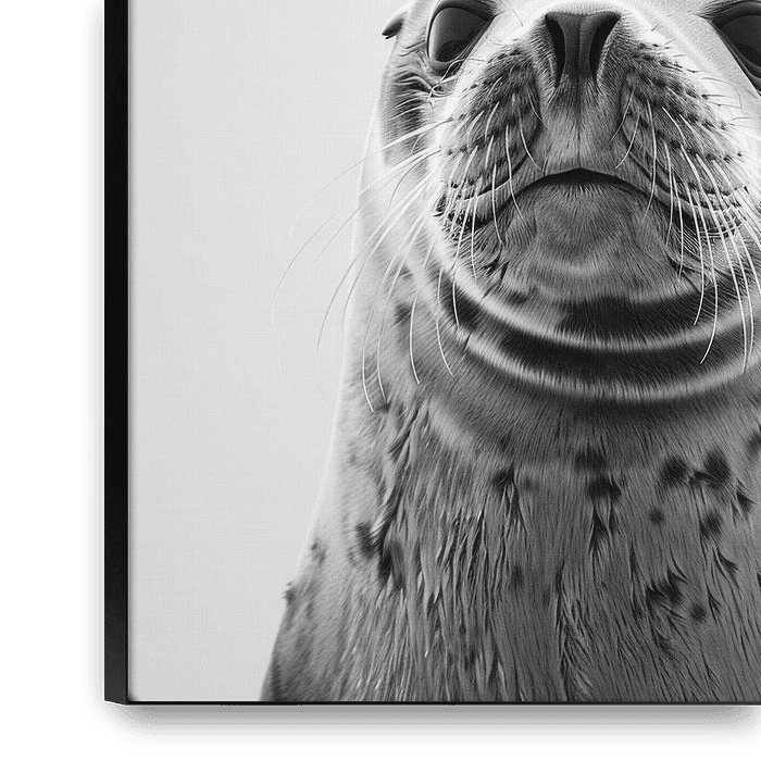 This impressive black and white photograph of a harbour seal perfectly captures the majestic calm and grace of the animal. The finely crafted details of the seal's skin and the deep, expressive eyes bring out the natural elegance and charisma of this sea creature. An ideal work of art for nature lovers and those who want to decorate…