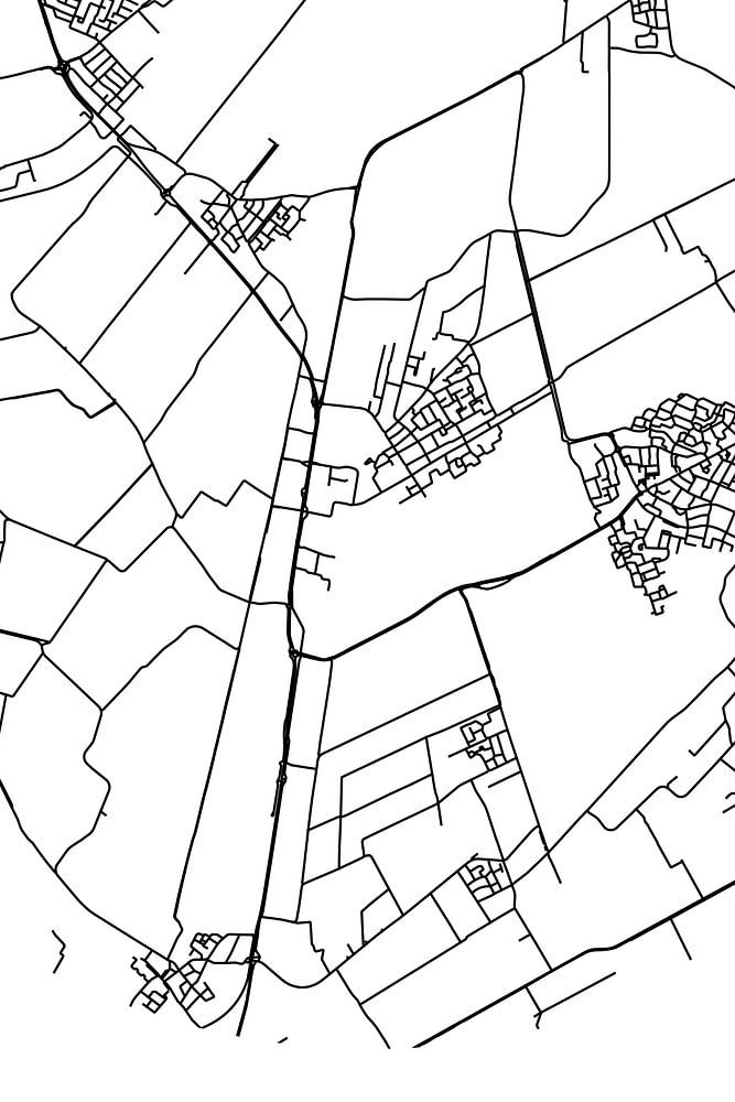 Black and white map, street map or street plan of Harkema. Harkema is located in the municipality of Achtkarspelen, province of Fryslan. On the city map all public roads in Harkema are included. Furthermore, the map is provided with the coordinates of the center of Harkema.