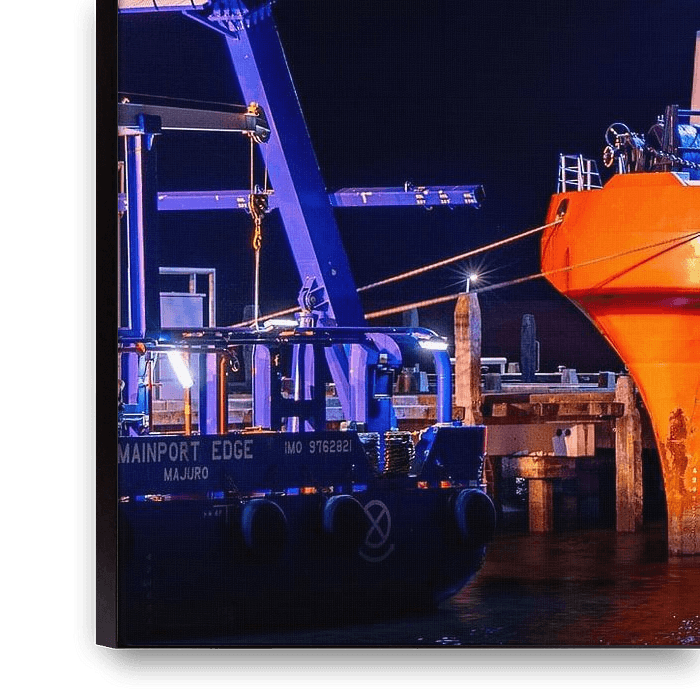 Buy the photo Harlingen Harbour - Night silence 'Glomar Supporter' by Edwin Kooren on canvas, ArtFrame, poster and wallpaper, printed on demand in high quality.