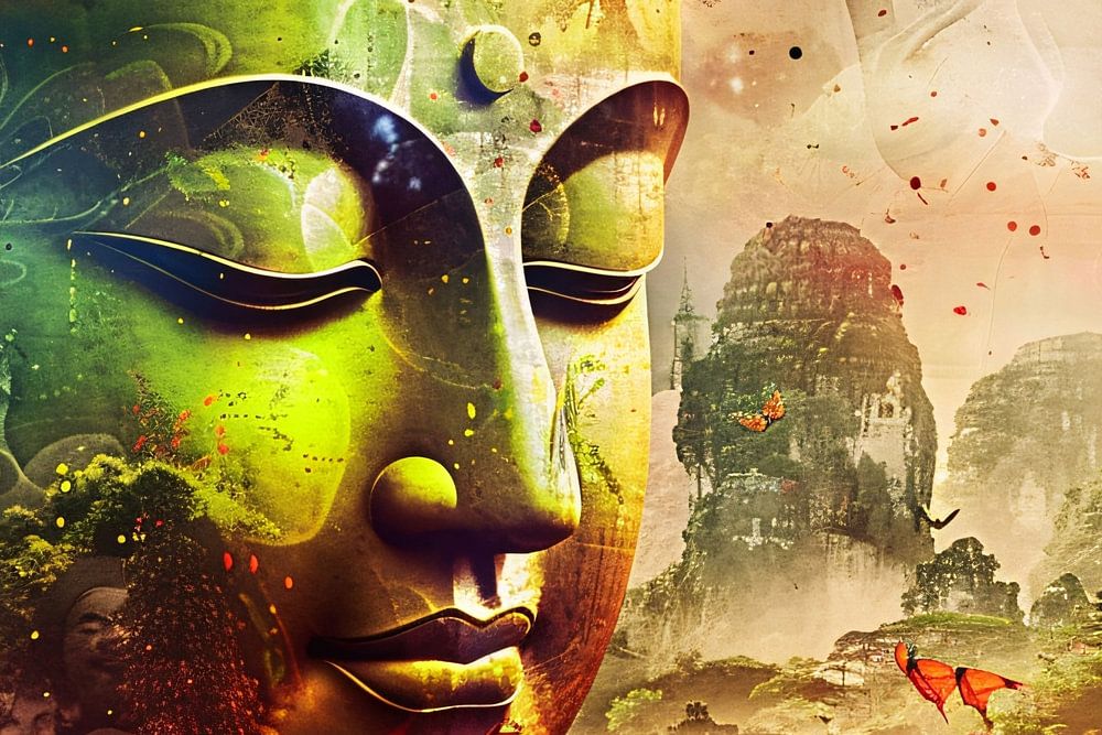 Harmonious Buddha with nature and butterflies by Art & Soul Creations