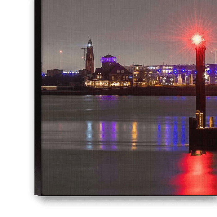 The Havenwelten (Haven Worlds) have been created in recent years at the mouth of the Weser River in Bremerhaven. The buildings of the Atlantic Hotel Sail City, the Klimahaus and the dome of the shopping arcade are striking. At night, the illumination of the buildings creates a fabulous reflection on the surface of the Weser.