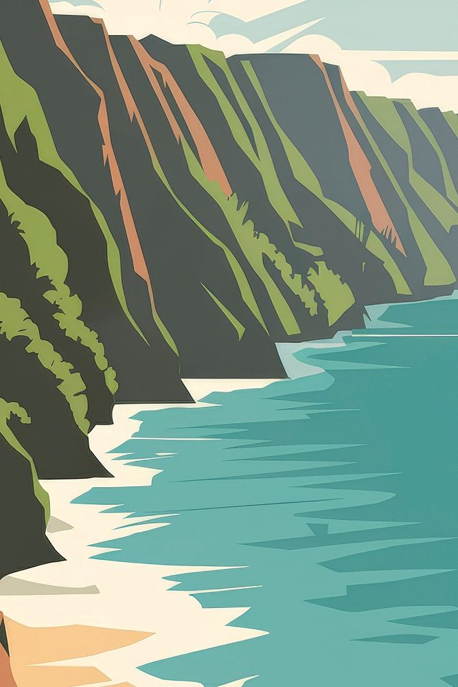 Immersed in soft shades of blue and lush green, Hawaii's coastal landscape evokes the dream of paradise. The steep cliffs and sparkling water invite you to linger. This work of art brings a touch of tropical faraway places into the living room and creates a relaxing atmosphere that invites you to dream.