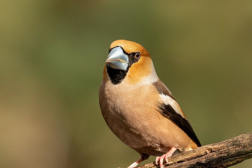 The apple chaffinch is an ornate finch with a conical beak, thick head and 'bull-neck'. The plumage of the apple finch is predominantly rusty brown, but with many accents. Wide white wing stripes, a white end band on the short tail and dark brown back and wings. The deep blue, curled tips of some of the flight feathers are striking. The beak of the male apple finch also turns steel blue when spring arrives.