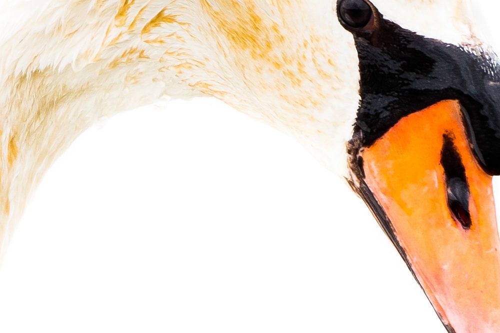 A great close-up of the head of a mute swan, so you can also see the unusual colours in its head. An imposing, graceful bird you see a lot in the Netherlands, often swans partners remain faithful to each other for life.