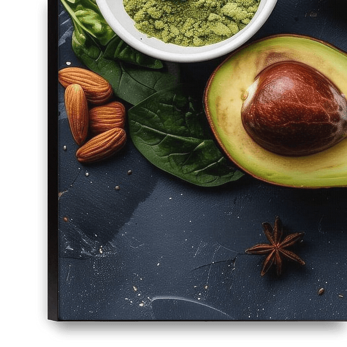 Buy this digital art artwork Healthy food clean eating selection: fruit, vegetable, seeds, superfood, cereals, leaf vegetable on grey copy space by de-nue-pic as a reproduction on canvas, ArtFrame, poster and wallpaper, printed on demand in high quality.