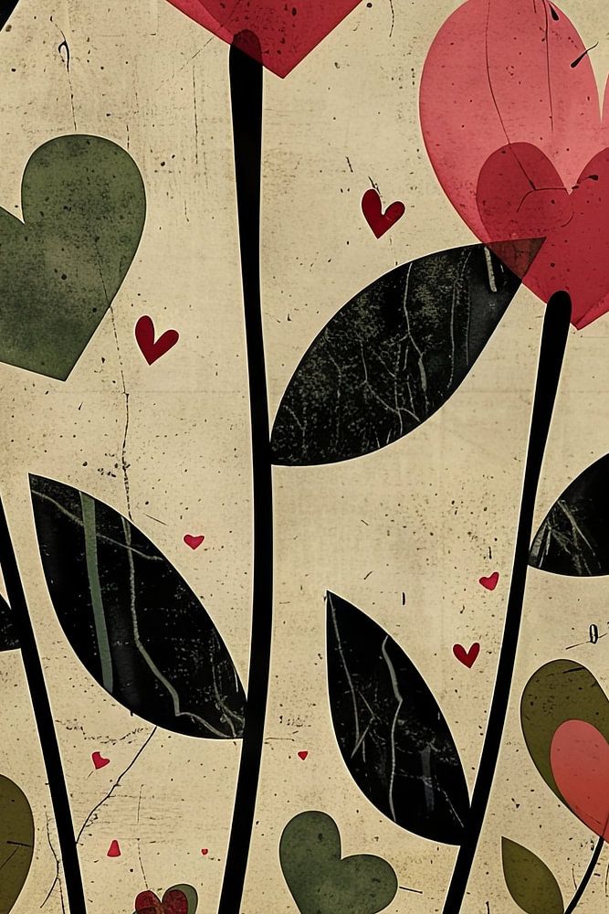 This colourful illustration shows a variety of heart-shaped flowers in warm shades of red and green. The harmonious composition and vibrant colours bring freshness and joy to any room. Ideal for the living room or office, this nature art will give your home a cheerful and inviting atmosphere. The modern and abstract depiction of the…