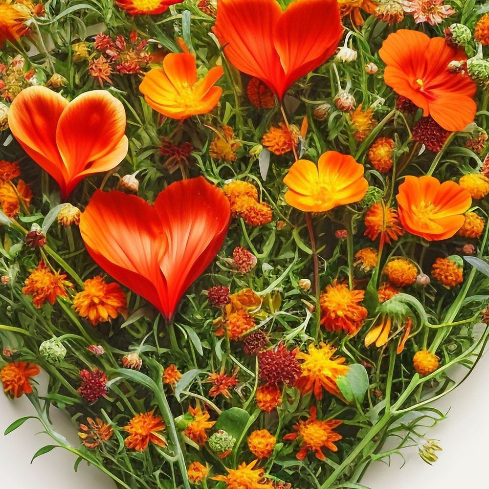 Heart made of flowers on a white background