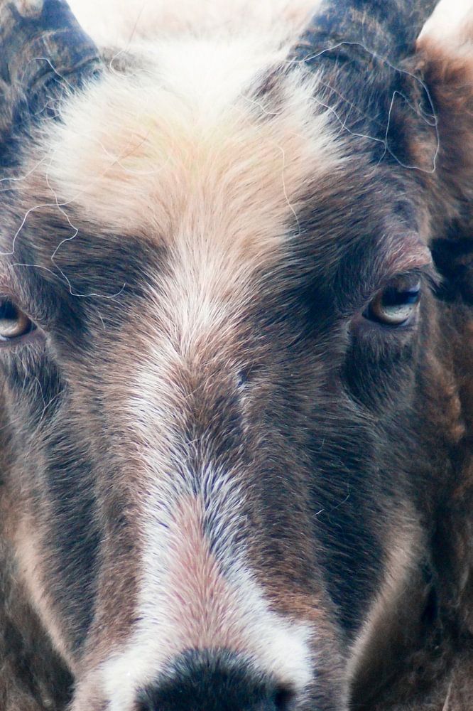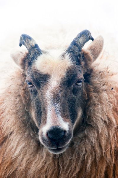 This Drentse Heideschaap looked straight into the lens. She was standing in a beautiful white landscape as the meadow was covered in a layer of snow.