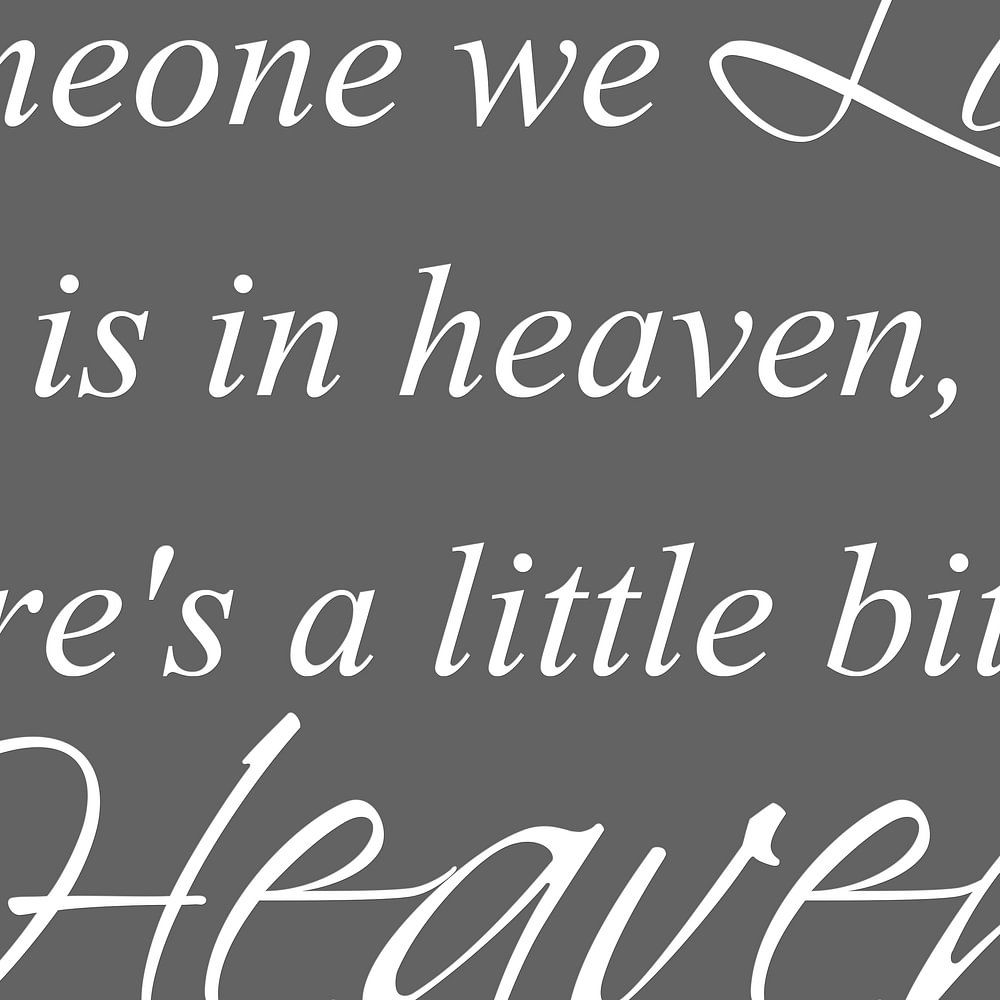 Because someone we love is in heaven. The background color is dark gray, the letters are white. Text on canvas or other material.