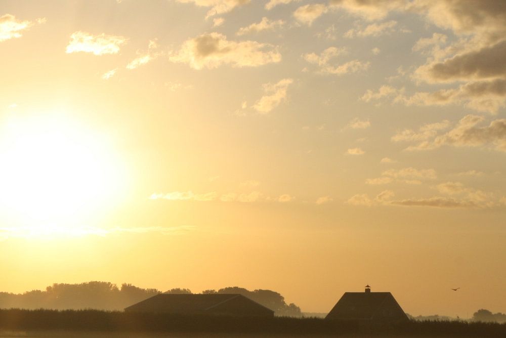 Hemels licht in de vroege morgen,`s moregens vroeg net na zonsopkomst schijnt de zon over de akkers, in zo als ze het noemen het Gouden UUR.