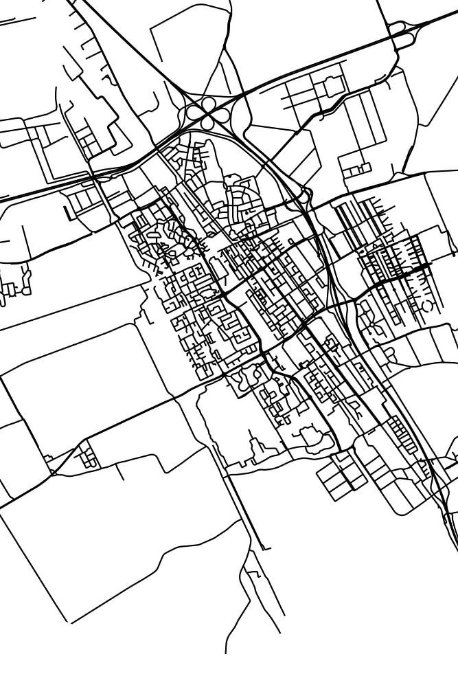 Black and white map, street map or street plan of Heerenveen. Heerenveen is located in the municipality of Heerenveen, province of Fryslan. The city map includes all public roads in Heerenveen. Furthermore, the map is provided with the coordinates of the center of Heerenveen.